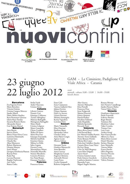 La Mostra di Grafica d’Arte NUOVI CONFINI si svolge dal 23 giugno al 19 luglio presso il GAM (Galleria Arte Moderna) al centro fieristico Le Ciminiere, Padiglione C2, Viale Africa, Catania.