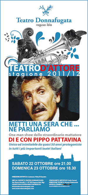 Sabato 22 e domenica 23 ottobre al Teatro di Donnafugata a Ragusa Ibla ci sarà il primo appuntamento della stagione teatrale Teatro d’Attore 2011/2012″: METTI UNA SERA CHE… NE PARLIAMO One man show dello straordinario mattatore di e con Pippo Pattavina.