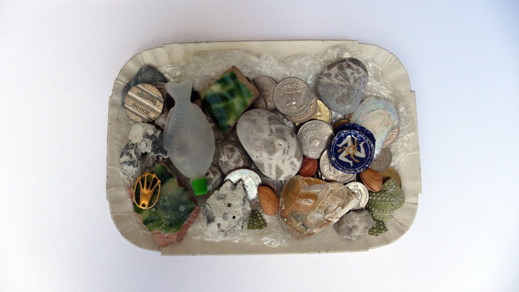 Questi vassoi contengono oggetti o scarti di nessun valore ma sono importanti proprio perché ci raccontano un modus operandi. Le cose che fa Giovanna sono vasi comunicanti: i vassoietti sono un’installazione, una performance, sono fotografie ma sono anche idee.