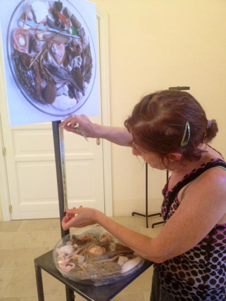 Giovanna annota, cataloga, documenta. Tabarè è una parola siciliana che significa vassoio ed è anche il titolo della mostra che siamo venuti ad ammirare qui a Noto.