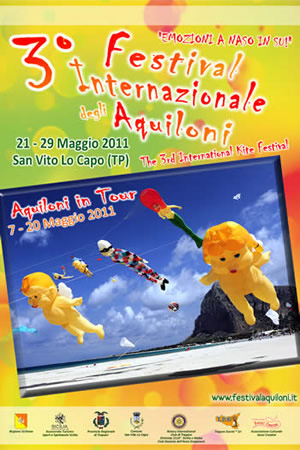 TERZO FESTIVAL INTERNAZIONALE DEGLI AQUILONI – “Emozioni a naso in su !” a San Vito Lo Capo (TP) dal 21 al 29 Maggio 2011.