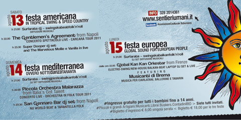 Al Castello di Donnafugata, a Ragusa, dal 13 al 15 agosto, si terrà la V edizione di “SENTIERI UMANI 2011 un villaggio musicale in festival”.