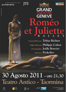 Manifesto Romeo e GiuliettaIl Ballet du Grand Théâtre de Genève, compagnia di danza Svizzera, si esibirà con con il balletto classico Romeo e Giulietta, con la coreografia di Joëlle Bouvier, martedì 30 Agosto al Teatro Antico di Taormina.