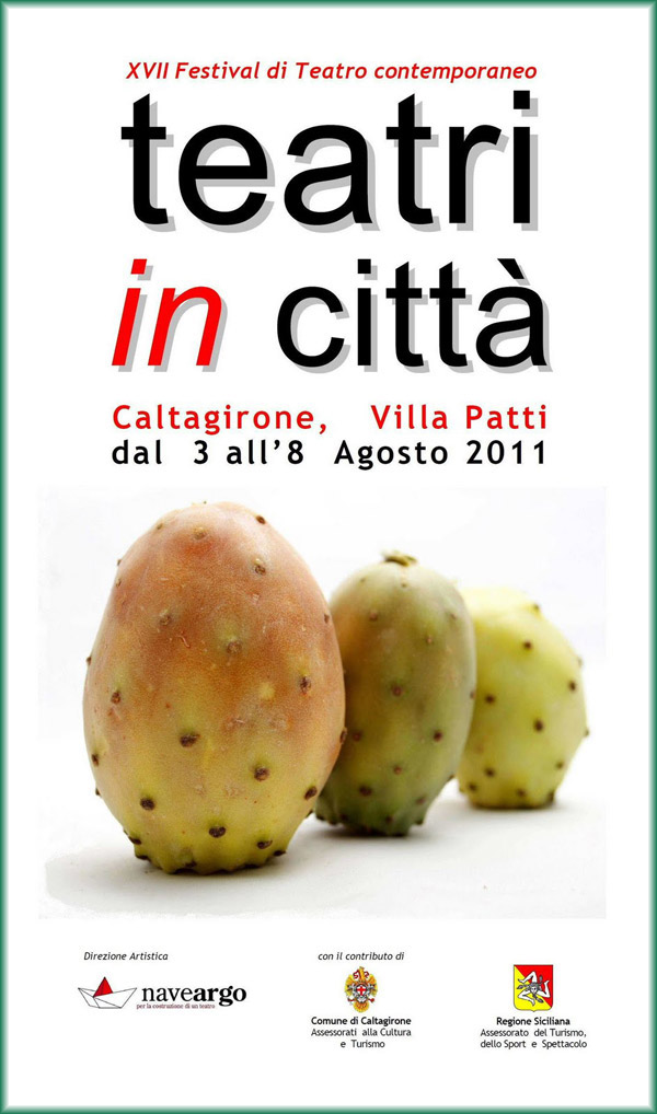 Dal 3 all’8 Agosto 2011, a Caltagirone (CT) si svolgerà la XVII edizione del Festival di teatro contemporaneo “Teatri in città“, promosso dall’Associazione Culturale “Nave Argo”.