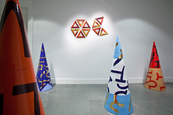 Dopo una sala dedicata alla serie delle opere a sviluppo centrico, denominate ‘tondi’ o ‘cervelli’, la mostra concentrerà la propria attenzione sulla strutturazione del segno in griglie e regolarità ritmiche, di cui oggi si può leggere la straordinaria attualità sia cromatica sia linguistica. Anche per queste ragioni, la mostra approfondisce in modo inedito e come mai in precedenza la fisicità del dialogo tra segno e trasparenza nel lavoro di Accardi: si concentra così in particolare sulle opere realizzate su sicofoil, che vanno dai lavori su telaio rettangolare o quadrato, agli accenni installativi dei telai sagomati, alle vere e proprie realizzazioni in chiave ambientale oltre il dipinto. A sottolineare questa tensione ambientale del lavoro di Accardi, l’intero itinerario della mostra è concepito come un percorso nel Palazzo che dialoga con la fisicità stessa delle sue sale, anche attraverso opere recenti e realizzate per l’occasione, come la grande superficie di ceramica concepita per il suo cortile. Il tracciato dell’esposizione sarà inoltre punteggiato da installazioni collocate in relazione con l’architettura e con le opere alle pareti, come ad esempio Rotoli (1965-69), Cilindrocono (1972), Paravento (1972), la serie dei Coni in maiolica (2004), Si dividono invano (2006).