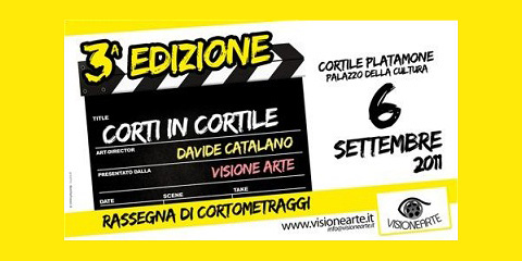 A Catania, al Cortile Platamone, all’interno del Palazzo della Cultura, ex convento di San Placido, via Museo Biscari 5, martedì 6 settembre 2011 dalle ore 10 alle ore 23.30, si svolgerà la Terza edizione di “Corti in Cortile –  Rassegna di Cortometraggi Siciliani”, organizzata dall’Associazione Culturale Visione Arte (realtà indipendente siciliana che opera nel settore delle produzioni cinematografica e audiovisiva, fondata nel 2009 per valorizzare la cultura del proprio territorio e per incentivare i giovani filmaker di talento a sfruttare le potenzialità dei linguaggi artistici) e patrocinata dal Comune e Teatro Stabile di Catania.