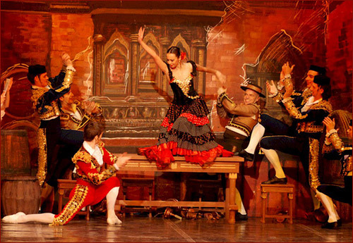 Il balletto in punta è ispirato alle avventure cavalleresche del Cavaliere della Mancia (Don Chisciotte) narrate nel romanzo di Miguel Cervantes. Nella versione “ballettistica” originale di Petipa in tre atti, non è l’anziano cavaliere il protagonista, ma la coppia Kitri-Basilio: lei figlia deliziosa di un oste che la vuole dare in sposa al ricco imbecille Gamache, lui barbiere squattrinato, ma favorito della ragazza.