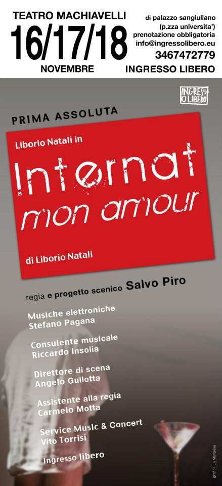 Sul palcoscenico del teatro, da venerdì 16 novembre a lunedì 19, andrà in scena “Internat mon amour” (produzione Ingresso Libero), uno spettacolo di e con Liborio Natali, per la regia di Salvo Piro.