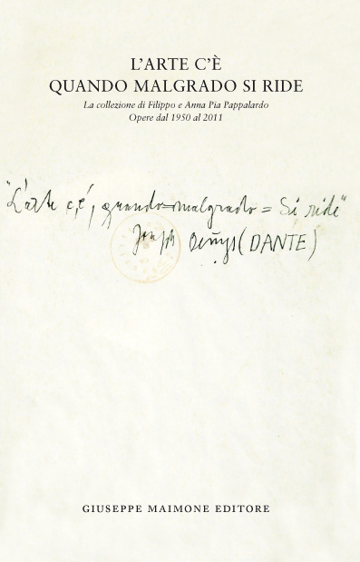 Filippo e Anna Pia Pappalardo appartengono a quel gruppo ristretto di collezionisti che non si lascia influenzare dalle mode e hanno così dato vita ad una collezione di notevole apertura, al di fuori di dinamiche puramente speculative o di mera affermazione sociale. Il farmacista catanese ha collezionato arte seguendo una logica storica – la raccolta racconta compiutamente il percorso che l’arte, e la pittura in particolare, ha seguito negli ultimi sessant’anni – e autobiografica, poiché ogni pezzo si lega indissolubilmente alla sua vita – e alla sua terra – e sono, come lui stesso afferma, “pagine dello stesso libro, versi di un’unica poesia”. È un collezionismo ‘emotivo’ quello di Filippo Pappalardo che concepisce l’arte non per essere chiusa in caveau ma per farla vivere intorno a sé. Tutti i pezzi della collezione sono infatti esposti, raggruppati per movimenti o temi, in tre spazi quotidianamente vissuti dalla famiglia Pappalardo. È in questo spirito di godimento dell’arte per sé e per gli altri che s’inserisce l’esposizione catanese che è la risposta generosa ad un invito avanzato dall’Università di Catania.