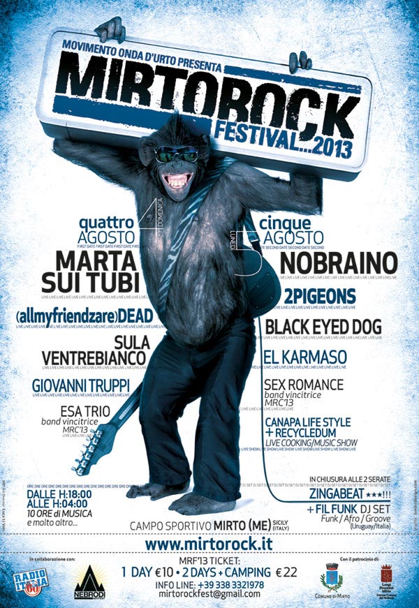 Così nasce il “Mirto Rock Contest” (MRC), concorso aperto e tutte le rock band, che ha lo scopo di selezionare le band che saliranno sul palco del “Mirto Rock Festival 2013” in apertura agli artisti ospiti del festival.