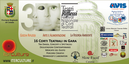 È giunto alla terza edizione Teatri Riflessi, il Festival Nazionale dei Corti Teatrali (15 – 16 e 17 luglio 2011 – Centro Fieristico Le Ciminiere, Catania) organizzato da IterCulture, associazione nata nel 2008 dalla volontà di diversi operatori culturali di contribuire al marketing territoriale, creando un’alternativa di qualità per il pubblico del tempo libero, in collaborazione con la Provincia regionale di Catania. (Programma)