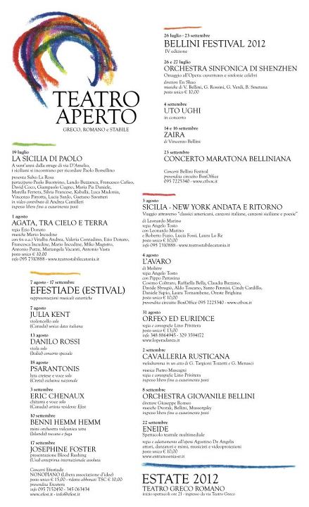 “Teatro aperto” è la soluzione che lo Stabile di Catania ha elaborato garantendo per quest’estate un calendario di appuntamenti di spettacoli di buona qualità. Come? «Gruppi e compagnie trarranno gli utili dai proventi delle vendite dei biglietti: non sono “scritturati” e non avranno dunque compenso dallo Stabile, ma potranno operare sotto l’ala di un’istituzione rinomata in campo nazionale e internazionale per il prestigio culturale e l’elevatissimo standard tecnico e organizzativo» evidenzia il direttore del Teatro Stabile Giuseppe Dipasquale.