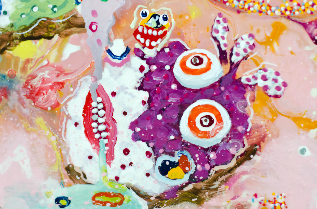 La ricerca artistica di WILLIAM MARC ZANGHI, infatti, è caratterizzata dalla capacità di unire particolari reali a dettagli d’immaginazione, per dare vita a paesaggi surreali (foreste, fiumi e paludi ma anche spiagge, isole acide e metafisiche abitate da animali, personaggi enigmatici e insolite creature) che si collocano sul limite tra una forte dimensione onirica e l’ossessione per il realismo dei particolari, tra visioni idilliache e atmosfere inquietanti. Queste scene tra il quotidiano e l’inaspettato sono contraddistinte da una gamma di colori alterati e vernici lucidissime che ne aumentano lo stato allucinatorio, dove si coniugano i suoi luoghi – mentali e fisici – tutti volti a rendere la complessità dell’animo umano.